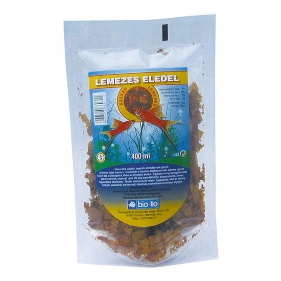 Bio-Lio Lemezes díszhaltáp. Lemezes alaptáp különleges étrendet nem igénylő halak részére. Elsősorban felszínen táplálkozó halak részére ajánlott. Rendszeres etetésével a halak megőrzik vitalitásukat. Kerülni kell az egyoldalú táplálást más természetes haleleség pl. vörös szúnyoglárva alkalmazása javasolt. Egyszerre csak annyi eleséget kell az akvárium vizébe szórni amennyit a halak maradéktalanul elfogyasztanak. Az akvárium vizét nem zavarosítja. Tartósítószert nem tartalmaz.