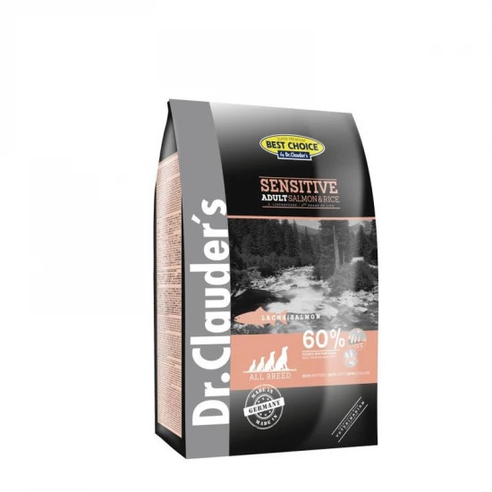 Összetevők: Szárított lazacfehérje (20%) (Omeg3, 6, 9 zsírsavak halolajból és olíva olajból), rizs (20%), rizsliszt (20%), burgonyaliszt, rizsfehérje, baromfizsír, cukorréparost, fehérje hidrolizát, lenmag, rizskorpa, baromfi fehérje hidrolizát, cikóriapor (FOS 1%), monokalcium-foszfát, halolaj (0,5%), élesztő, kalcium-karbonát, kálium-klorid, nátrium-klorid, olíva olaj (0,1%).