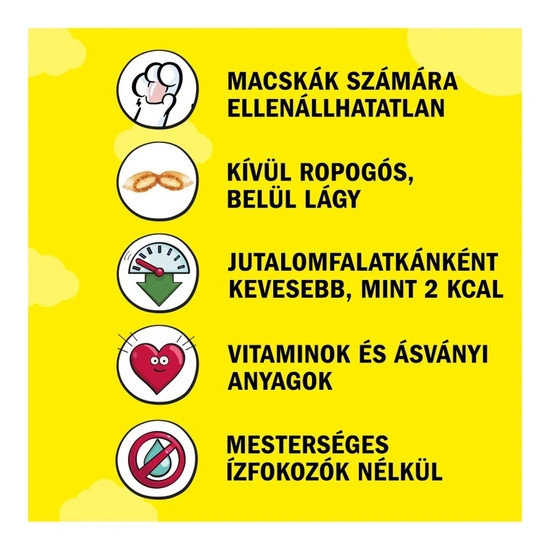 A Dreamies macskacsemege kevesebb mint 2 kalóriát tartalmaz, ezért lelkiismeret furdalás nélkül kényeztetheti kedvencét.