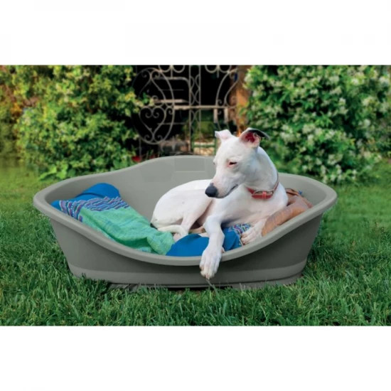 Kiváló minőséget garantál és lehetővé teszi kedvenceink nyugodt alvását, köszönhetően a magas és kényelmes peremnek és az alacsonyabb előlapnak, a csúszásgátló lábaknak és a megfelelő szellőzést biztosító alján elhelyezett lyukaknak. Ez a kisállatágy könnyen tisztítható, beltéren és kültéren egyaránt elhelyezhető.