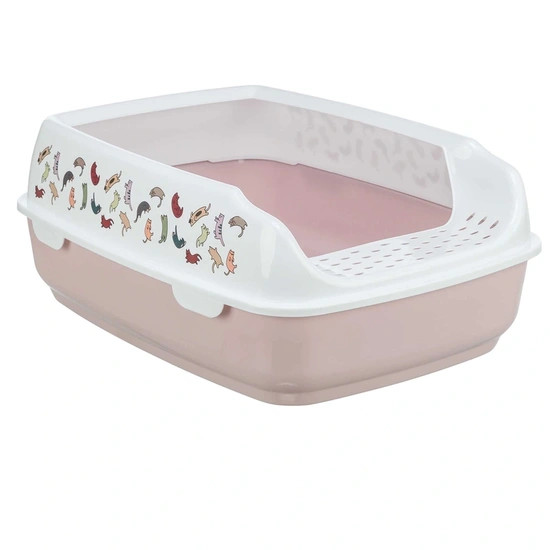 .Macska Alomtálca Delio, Peremes, Nyomott mintával, 38 × 20 × 50 cm, Világos akáclila/Fehér