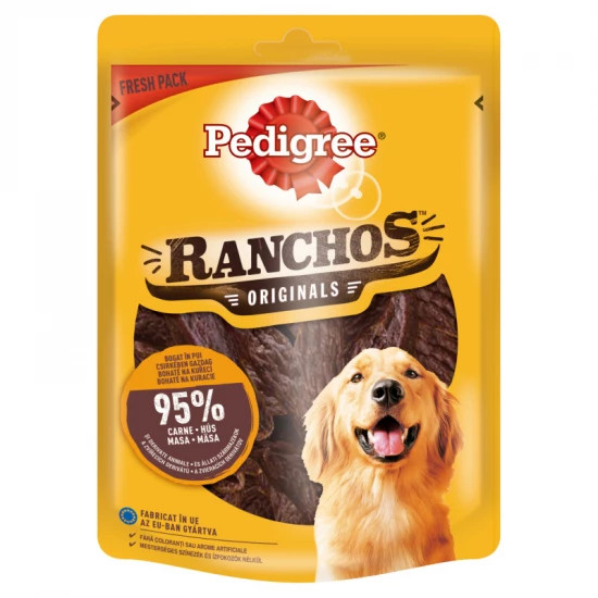 A Pedigree Ranchos Csirkével snack 95% hússal és állati melléktermékkel készült puha jutalomfalat. Gondosan szárított, igazán ízletes és finom illatú.