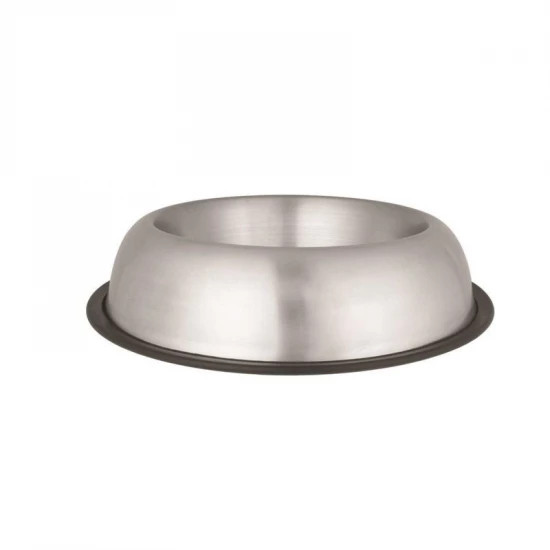 Rozsdamentes etetőtál gumi peremmel. Méret: 2,350l / 25cm