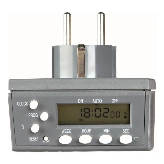 4.Nyomja meg a PROG gombot ismét, a kikapcsolási idő beállításához, a kijelzőn 1 OFF felirat fog megjelenni. Használja a WEEK, HOUR, MIN, SEC gombokat, ahogy azt korábban is tette. Figyeljen arra, hogy a WEEK a bekapcsolási és kikapcsolási időnél azonos legyen.