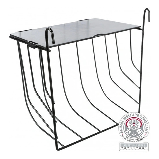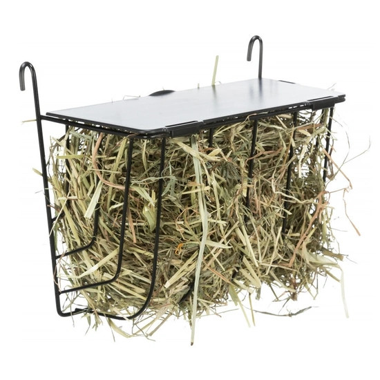 Ketrec rácsra akasztható fém Trixie szénatartó rágácsálóknak és nyulaknak. A kiegészítő fedél megakadályozza, hogy kedvence beleugorjon a szénatartóba és így megsérüljön.