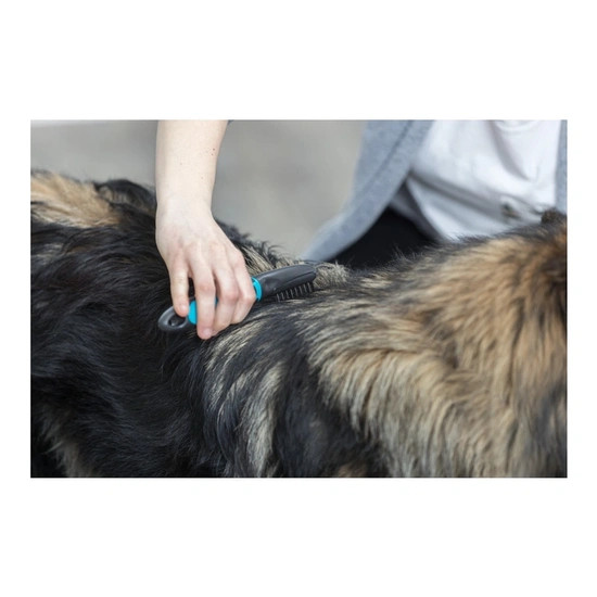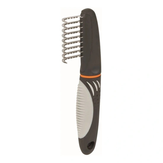A szőr felső és alsó rétegeiből is segít eltávolítani a csomókat, filceket. Anyaga: fém, műanyag gumi markolattal. Méret: 18cm. Fogak hossza: 3,5cm. Ne hagyja kedvencét felügyelet nélkül a termékkel. Származási hely: a csomagolásra nyomtatva. Forgalmazza: Alpha-Vet Kft. 1194 Budapest Hofherr A. u. 42. vevoszolgalatbp@alpha-vet.hu