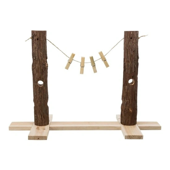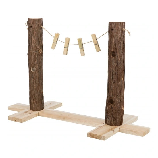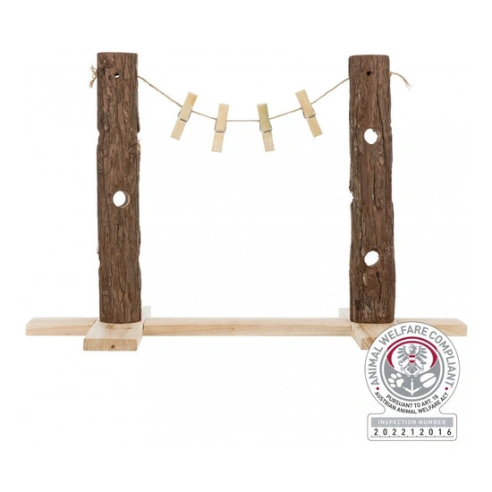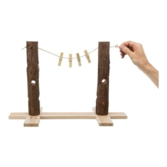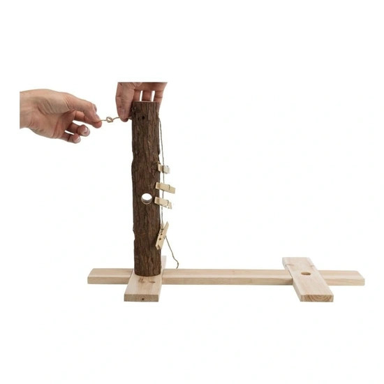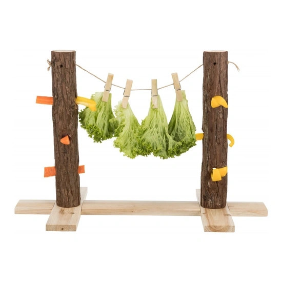 A könnyű összeszerelés után zöldségeket, ágakat és egyéb jutalomfalatokat rögzíthet a csipeszekre, vagy a kialakított lyukakba.