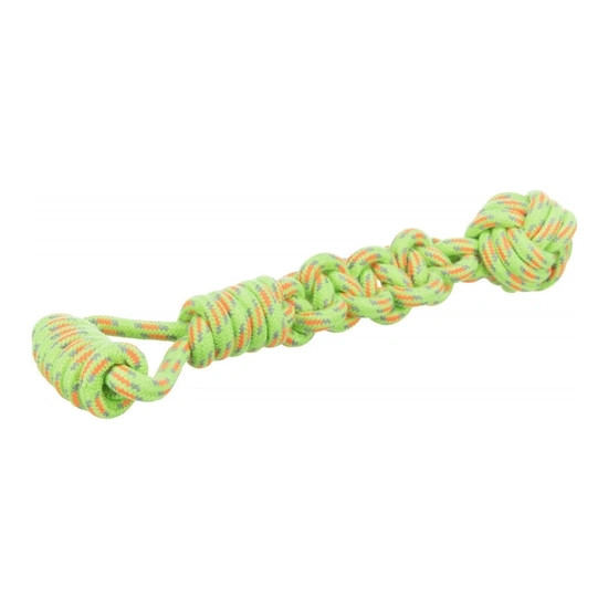 Ez a strapabíró játék ideális választás közepes és nagytestű kutyák számára, akik szeretnek rágcsálni, játszani. A pamutból és poliészterből készült kötél puha a kutya ínyének, a szőtt labda pedig extra tartósságot biztosít. A játék két végén csomó található, így a gazdi könnyen megfoghatja és dobhatja, a kutya pedig élvezettel rángathatja.