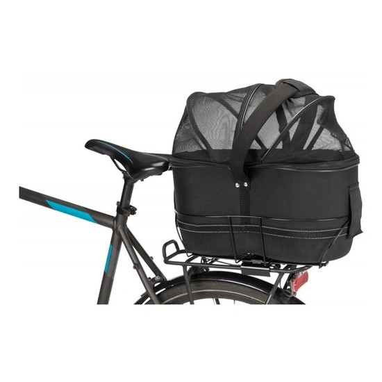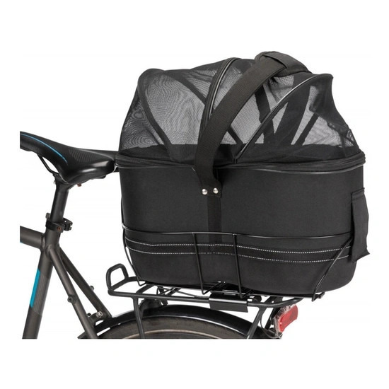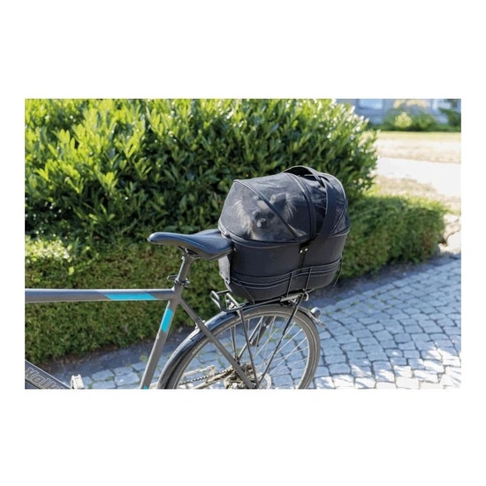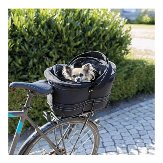 A Trixie kerékpáros kosarával kutyáját gond nélkül magával viheti a biciklis utak során. A kosárra felszerelt tartóval gyorsan fel-, és leszerelhető a kerékpár csomagtartójáról. A kosárba beépített puha plüss takaró gondoskodik kedvence kényelméről. A beépített rövid pórázra a hámot, vagy nyakörvet erősítheti, így a kutya nem tud kiugrani a kosárból. Kérjük, vegye figyelembe a kosár maximális terhelhetőségét. Az első kirándulás előtt ismertesse meg a kutyával a szállítókosarat és megfelelő időt szánjon erre a lépésre. Ha szükséges, gyakorolja a kerékpározást csak a kosárral, a kedvence nélkül. Tegyen hasonló súlyt a kosárba, hogy megszokja a megváltozott kormányzási viselkedést. Tartsa erősen a kerékpárját, miközben a kutyát beteszi a kosárba, vagy kiveszi őt. Amikor leállítja a kerékpárt, akkor ügyeljen rá, hogy a bicikli ne dőljön fel a kutyával a kosárban. Ne hagyja kedvencét felügyelet nélkül a kosárban.