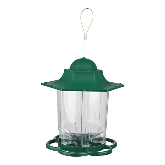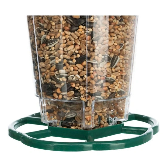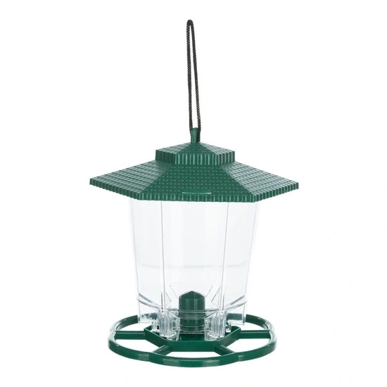 Felakasztható, időjárásálló kültéri madáretető műanyagból, vadmadarak részére. A vadmadarak könnyedén elfogadják és felkeresik. A nagyméretű tető segíti megóvni a felkínált magokat az időjárás viszontagságaitól.