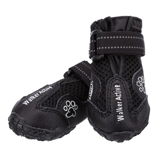 A Trixie Walker Active Protective védőcipő csúszásmentes tartást biztosít a robosztus talpának köszönhetően. Védelmet nyújt köves, vagy forró talajon, télen pedig védi a kutya lábát a só szemcséktől. A cipő használatával csökkentheti a mancsok megsérülése utáni fertőzés kockázatát, így támogathatja a gyógyulási folyamatot. Védi a sebet a szennyeződésektől és a nedvességtől. Hosszantartó minőség, kényelmes viselet, fényvisszaverő csíkokkal ellátva. A tépőzárral könnyedén rögzíthető. Színe: Fekete. Méret: XS Yorkshire Terriernek, vagy hasonló testméretű kutyáknak ajánlott.
