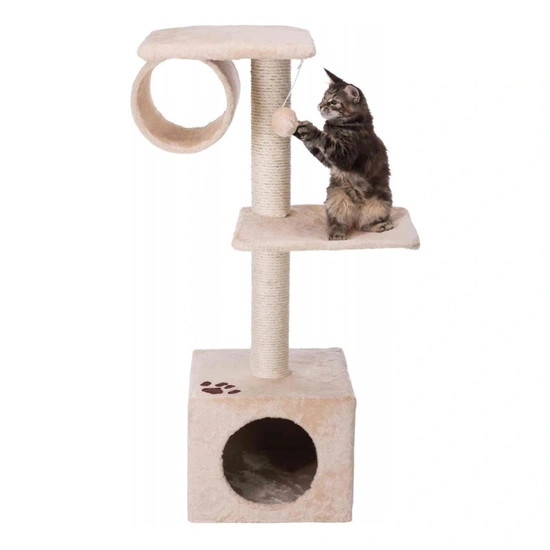 Trixie - Kaparófa San Fernando bézs 106 cm A macskáknak koptatniuk kell a karmaikat nehogy azok elakadjanak és ezáltal komolyabb sérülések történjenek. A kaparófa megfelelő helyet biztosít a cica számára a karmok koptatására anélkül hogy a bútorokban vagy a szőnyegben kárt tenne. Fiatal és senior macskák részére egyaránt alkalmas. 2 fekvőhelyből (1 kagyló alakú) 2 oszlopból 1 hengerből és 1 odúból áll.