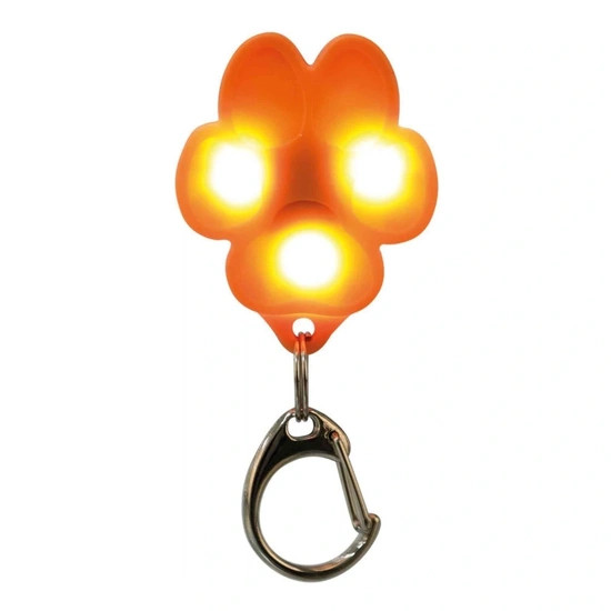 A Trixie nyakörvre, pórázra csatolható törésálló villogóval biztonságosabbak lehetnek a séták rossz látási viszonyok, vagy sötétedés közben. Kb. 5 órás villogó fényt, vagy 2,5 óra folyamatos fényt biztosít. Cseppálló, USB kábelről tölthető. A csomag tartalma 1db mancs formájú villogó, 1 db USB kábel. Mérete: 3.5/4,3cm, színe: narancssárga