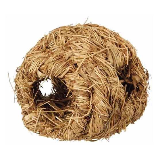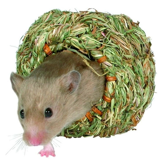 A fűből készült odú emészthető, így a kisállat rágcsálhatja is. Ez nem csak szórakozást nyújt, de segít a fogai kopásában is.