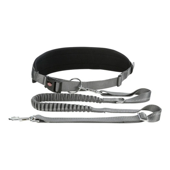 A közepes és nagytestű kutyák számára kifejlesztett Trixie derékra rögzíthető póráz segítségével ezentúl sokkal biztonságosabban kocoghat együtt kutyájával. Kocogáshoz, nordic walkinghoz ajánlott, feszültségmentesített csattal. A rugalmas póráz lágyítja a hirtelen rántásokat. A párnázott neoprém bélésnek köszönhetően kényelmes viseletet biztosít. A rugalmas póráz lágyítja a hirtelen rántásokat és kíméli kedvence gerincét és ízületeit. Fényvisszaverő alkatrészekkel ellátott, heveder szalag. Mérete: Méretek: öv: 75-120 cm / 9 cm póráz: 1,20-1,50 m / 25 mm, derék kerülete: 75-120 cm, Szín: fekete